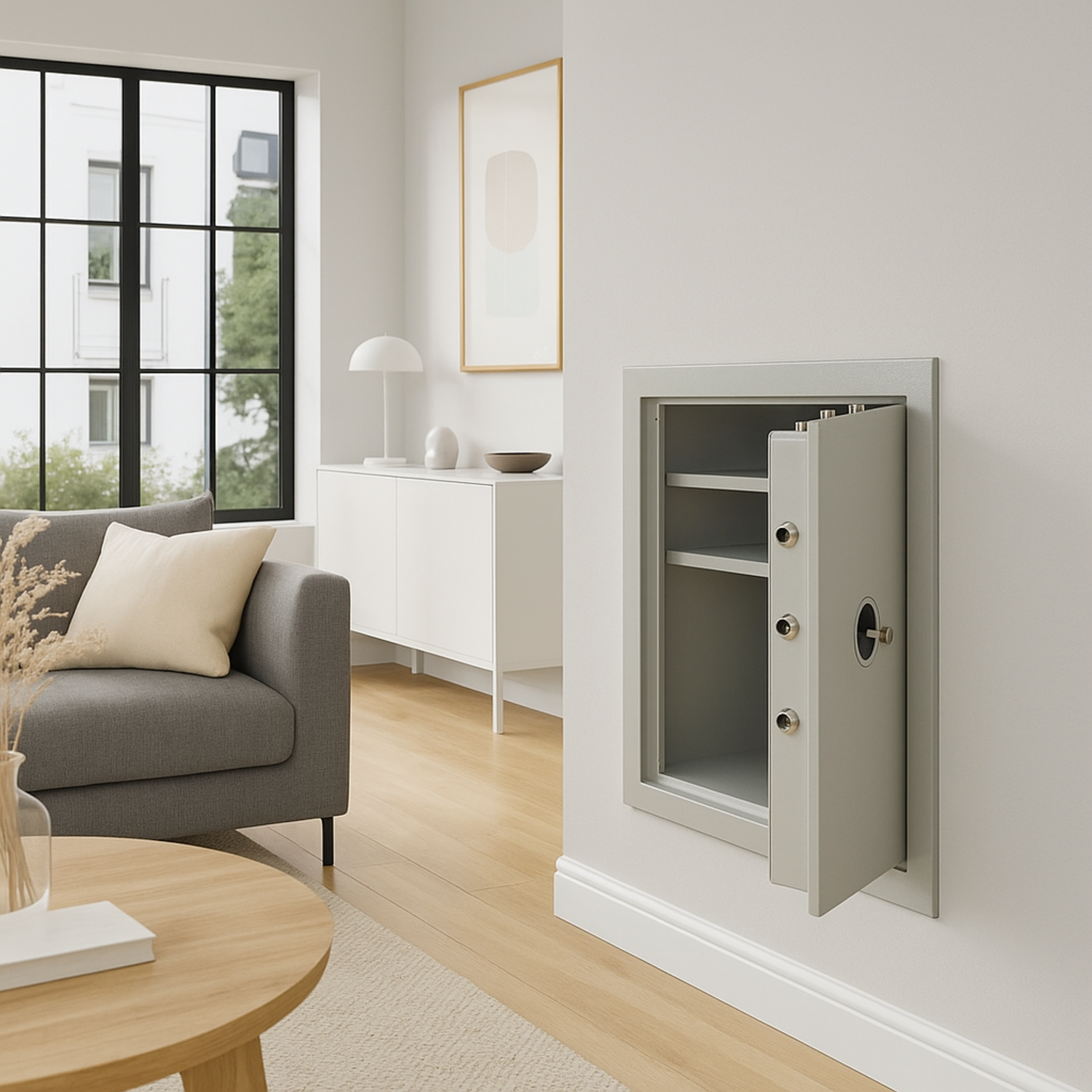 - Integration in Möbel- oder Wandflächen (z. B. Möbeltresor, Wandtresor)